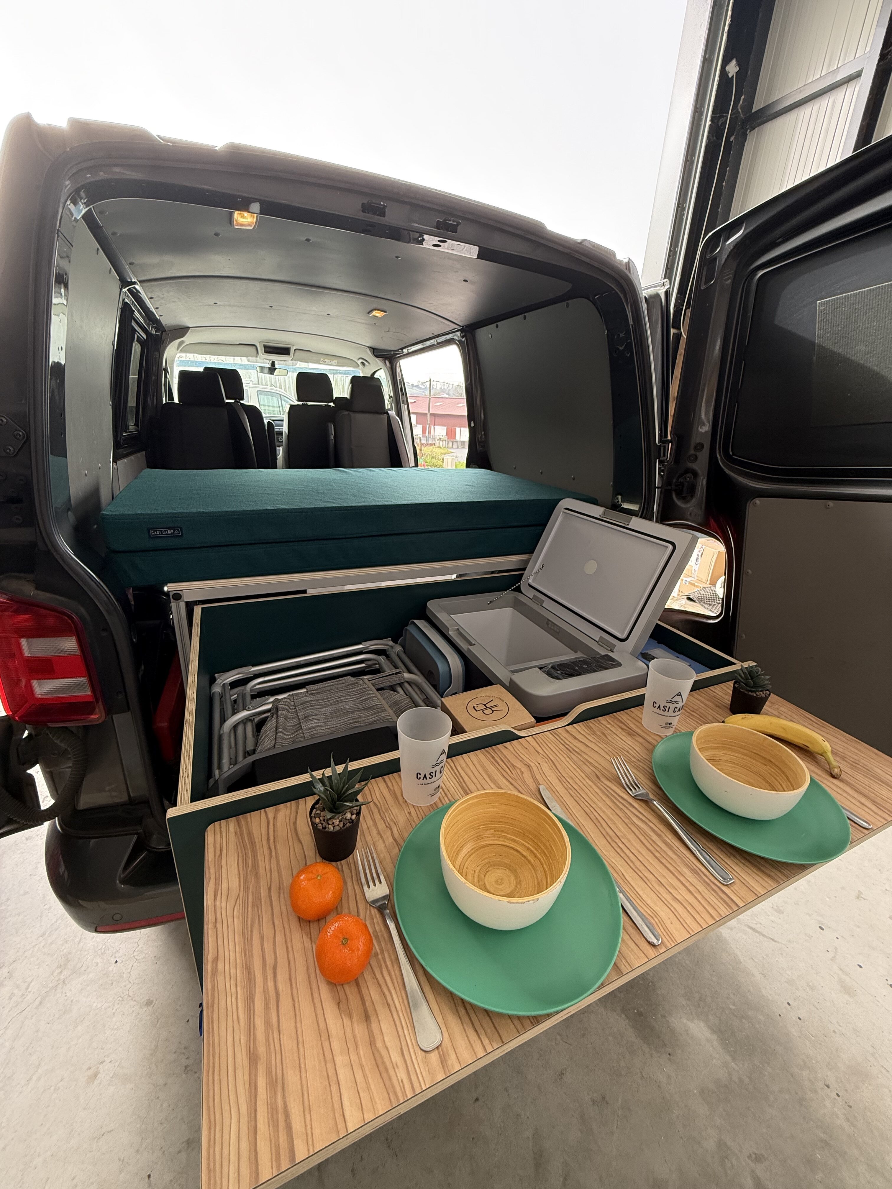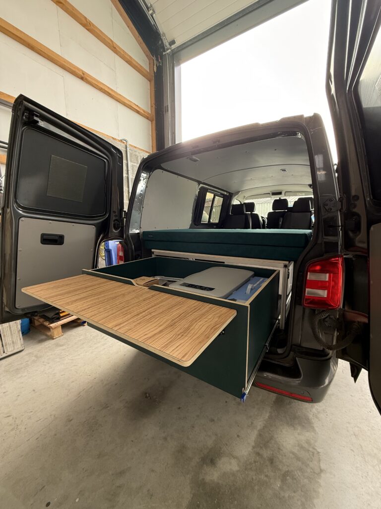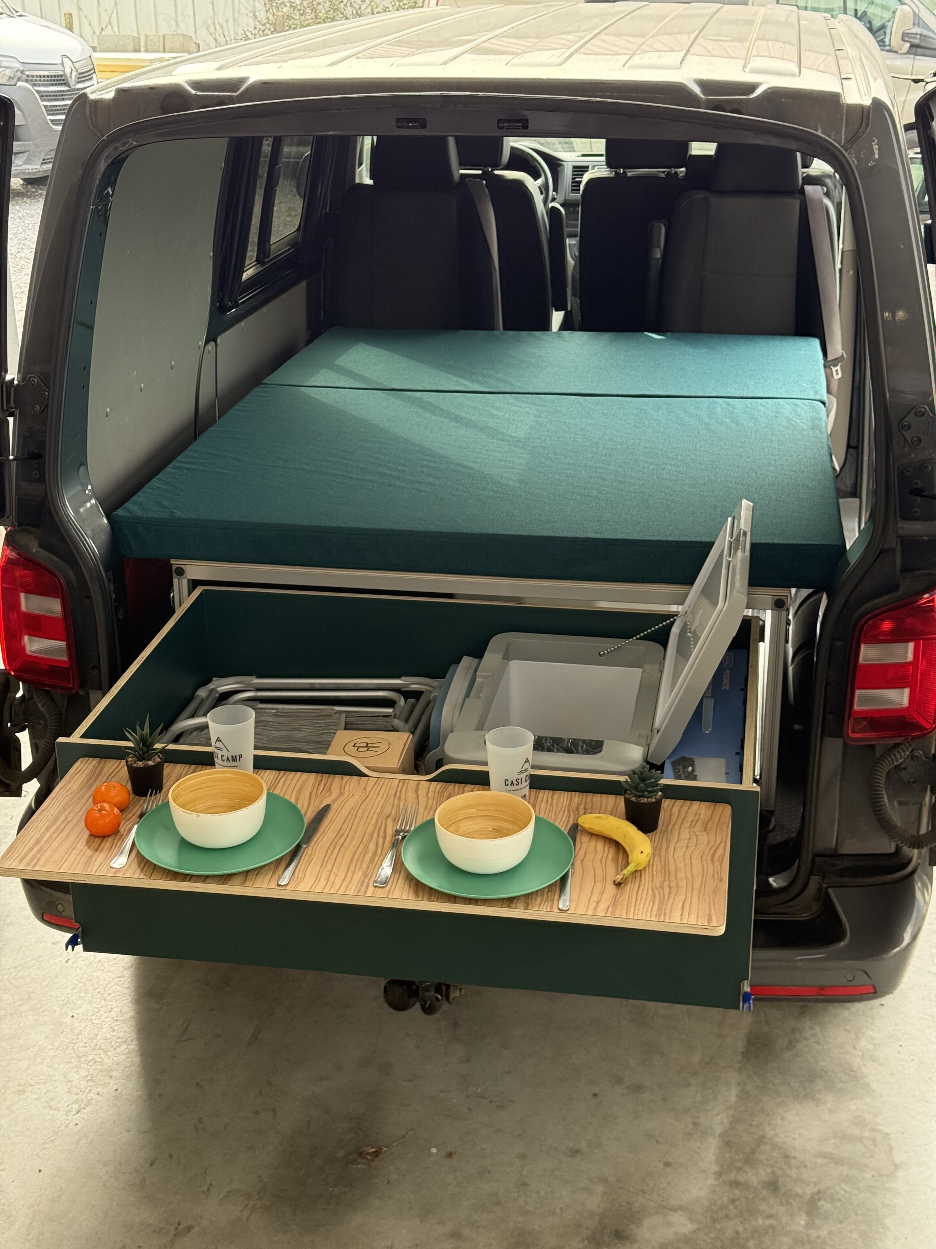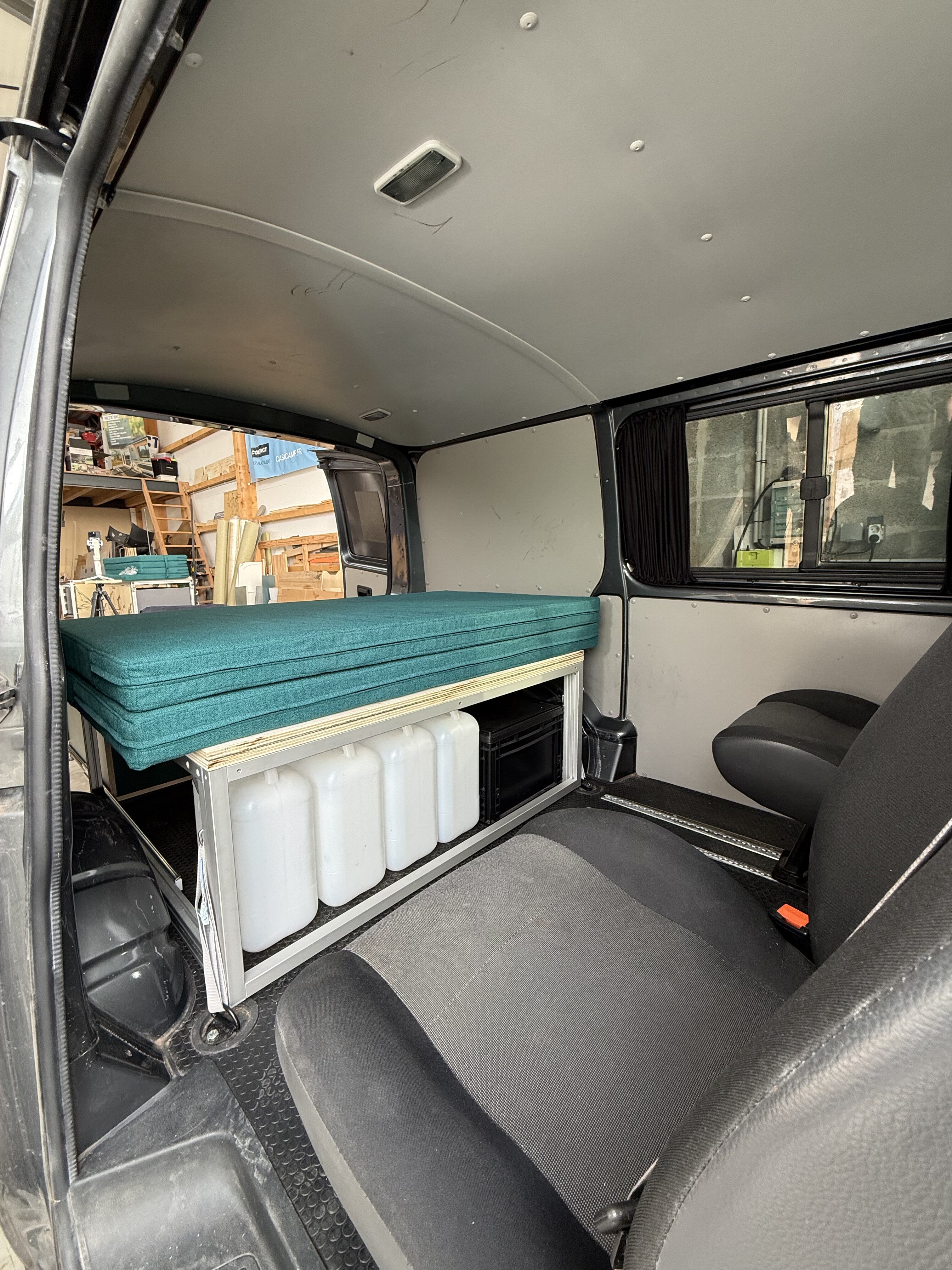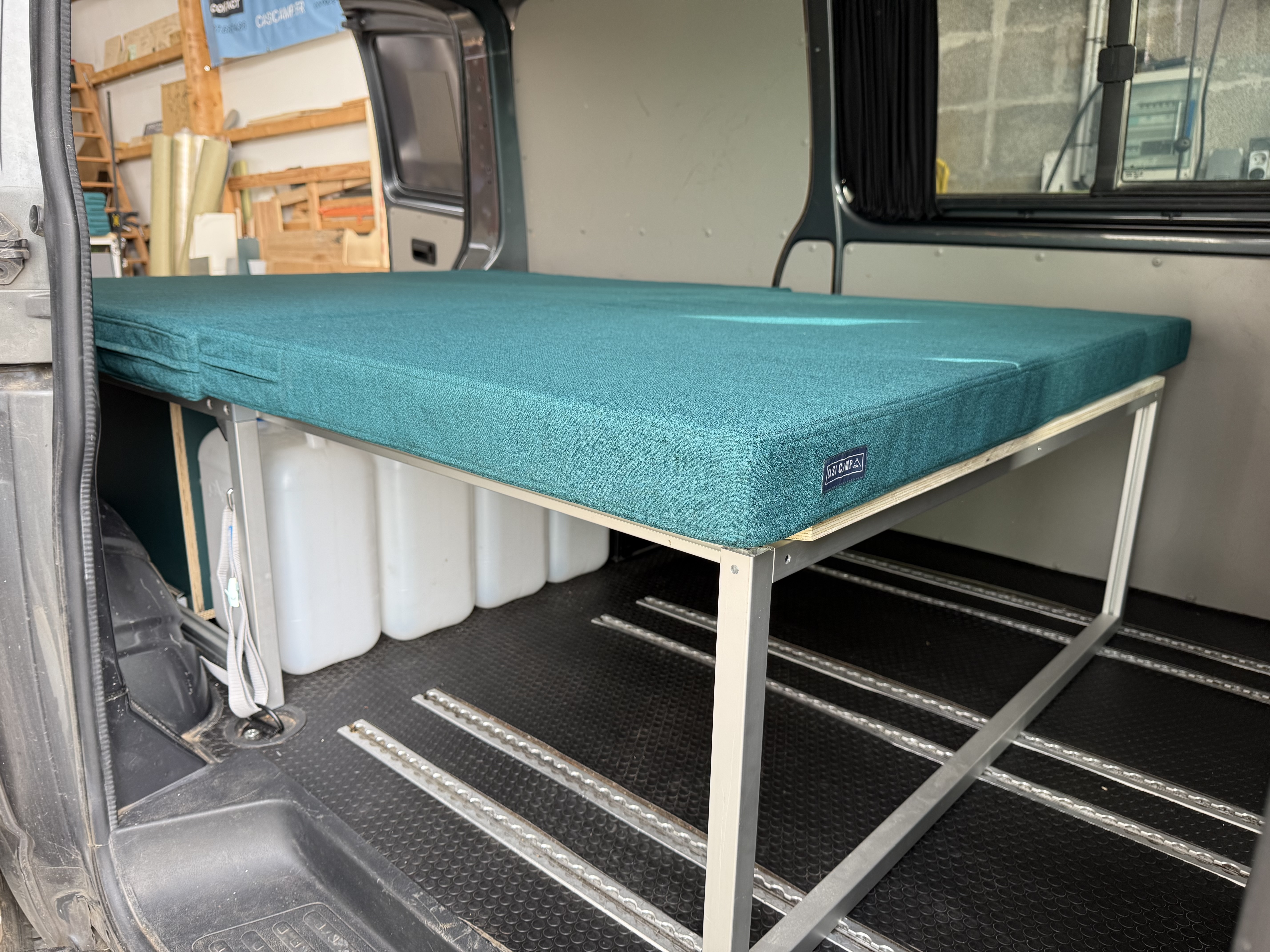 Le SOFA est une banquette dans la largeur du véhicule avec des rangements en dessous et se convertit en lit double.